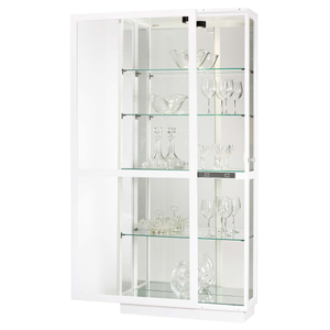With a unique design, the Howard Miller 680574 Jayden IV White Curio Cabinet is a beautiful addition for any space. Enjoy the adjustable shelving and detailed features of this glass display cabinet, perfect for showcasing your favorite collectibles.