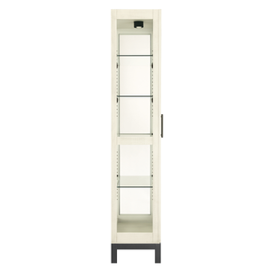 Show off your collectibles with the Howard Miller 680681 Quinn IV Curio Cabinet. Its aged linen finish is wire-brushed for an antique appearance, and it can be displayed on its own or in multiples to create bunching cabinets.