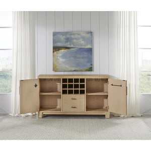 The American Heritage Port Royal Bar Console in White Oak is designed to be elegant, functional, and space-efficient. Its white wash oak grain finish gives a light, airy feel that brightens a room. Satin brass hardware provides warm contrast and refined detail. It works well as a wine console in a hallway, entryway, dining room, or small entertainment area. With features like stemware holders, wine storage, and even a built-in bottle opener, it gives you much of the utility of a full bar without consuming as much space.