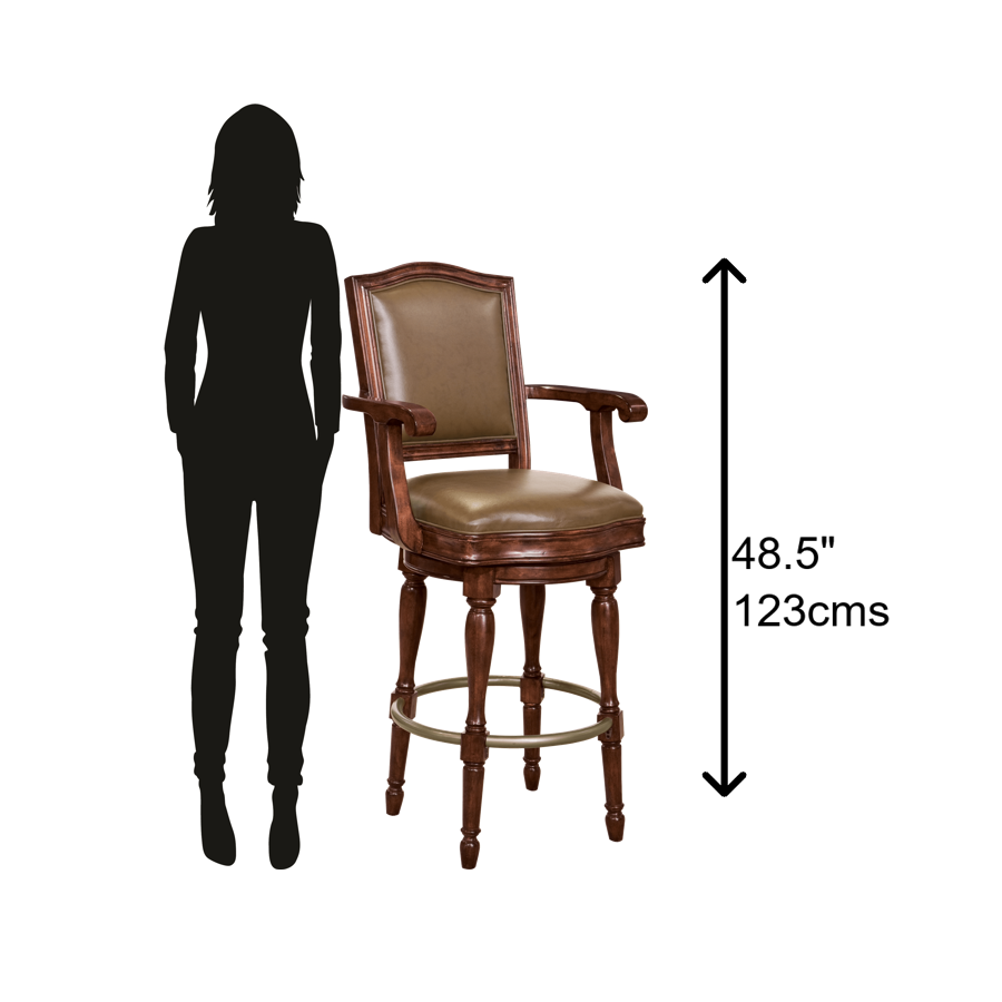 Categories: $1,000 to $1,500, Bar Height, Bar Stools, Howard Miller, Leather, Medium Finish, Swivel, Traditional, Under $2,500, Upholstered, With Arms, With Back