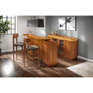 Designed in mid-century modern style, the Howard Miller 697058 Thorin Bar Stool is perfect for a home bar, kitchen island, or dining space. Its warm wood tones, clean lines, and curved backrest create a sophisticated silhouette, while the padded black seat ensures you stay comfortable whether you're enjoying your morning coffee or entertaining guests. Crafted for everyday use, this bar stool has sturdy construction, thoughtful details, and versatile design.